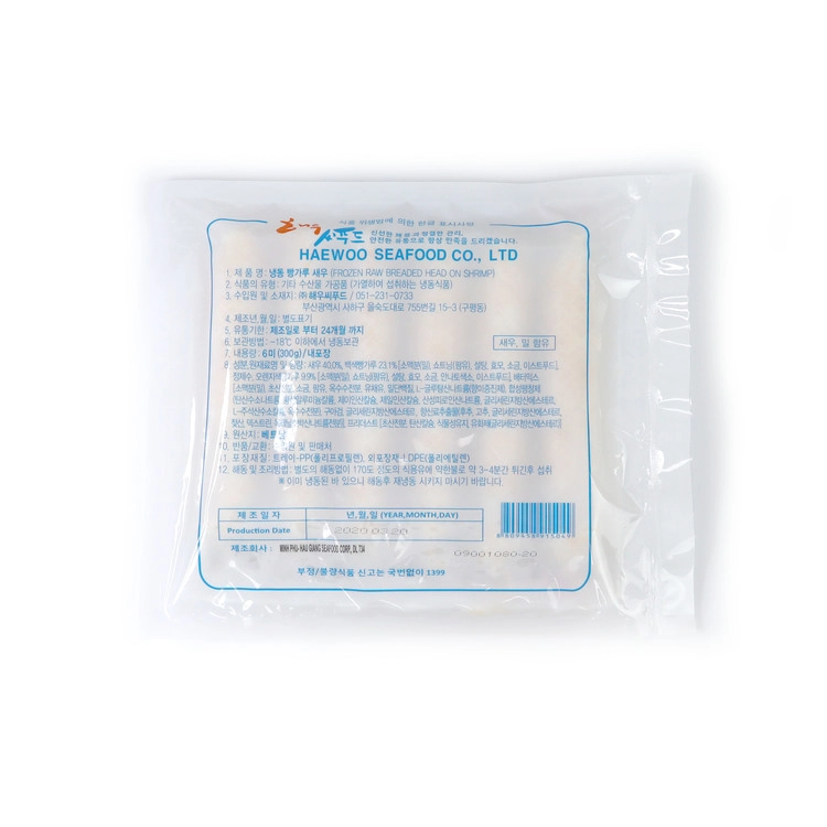 새우 40%, 백색빵가루, 오렌지색빵가루 등 기타내용 제품 상세 표기